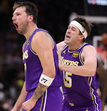 东契奇本赛季场均33.5分7.7篮板8.3助攻,联盟得分王,湖人队史第5位得分王。疯狂三月场均干到37.5分8篮板7.4助攻。里夫斯也是状态火热,场均23.3分5.5助攻,投篮命中率49%。